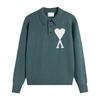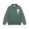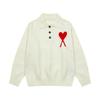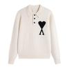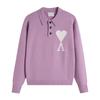 This stylish unisex polo sweater features a loose fit and a distinctive tailor neckline, offering both comfort and sophistication. With long sleeves, it provides warmth and versatility for various occasions. Crafted from a high-quality cotton blend, including blended cotton for a luxurious feel, this sweater is soft, durable, and perfect for any season. The standout design includes a large heart jacquard pattern, adding a touch of charm and uniqueness to your wardrobe.