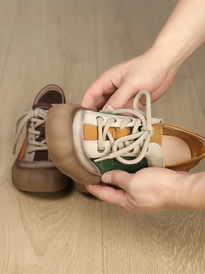 Johnature Genuine Leather Mixed Colors Casual Shoes Versatile Soft Soled Lace-up Flat Women's Shoes