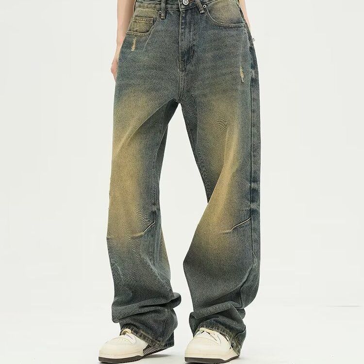 JYL Mens Jeans Hong Kong Style Letter Print Hip-hop High Street Denim