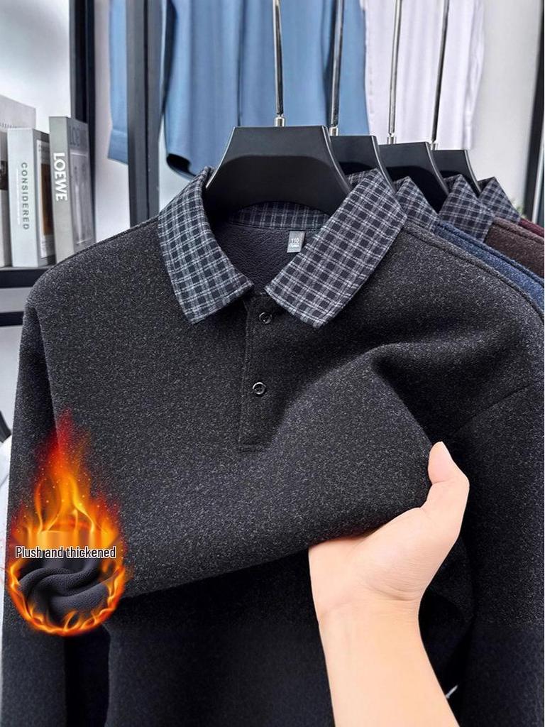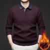 Introducing the perfect addition to your fall and winter wardrobe: a cozy and stylish faux two-piece sweater designed for middle-aged dads. This sweater features a unique tailor neckline that adds a touch of sophistication to any outfit. Its long sleeves ensure warmth and comfort during the cooler months. Crafted from high-quality polyester material and lined with a plus velvet base layer, this sweater provides exceptional insulation. The chemical fiber blended fur adds an extra layer of softness and warmth. Available in a solid color, this warm knit base layer offers both versatility and style, making it a must-have for every dad's wardrobe.