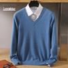 Indulge in unparalleled comfort and sophistication with this Men's Luxury Cashmere Knit V-Neck Sweater from our Autumn/Winter Collection. Crafted from exquisite mink fur, the sweater offers a delicate thinness while ensuring warmth and elegance. Its loose fit and classic V-neckline provide a relaxed yet refined look, perfect for layering over shirts or turtlenecks. The long sleeves add to its timeless appeal, making it an exceptional choice for both casual and formal occasions.