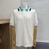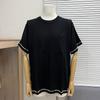 Uppgradera din garderob med denna snygga stickade t-shirt, perfekt för din vår- och sommarkollektion. Denna topp med korta ärmar är designad med en lös passform och en klassisk rund halsringning och erbjuder en bekväm känsla att bära.. Tillverkad av högkvalitativt bomullsmaterial ger t-shirten en standardtjocklek som är andningsbar och idealisk för varmt väder. Den trendiga jacquardetiketten och logodetaljerna ger en touch av modern stil, vilket gör den till en mångsidig produkt för alla avslappnade tillfällen.