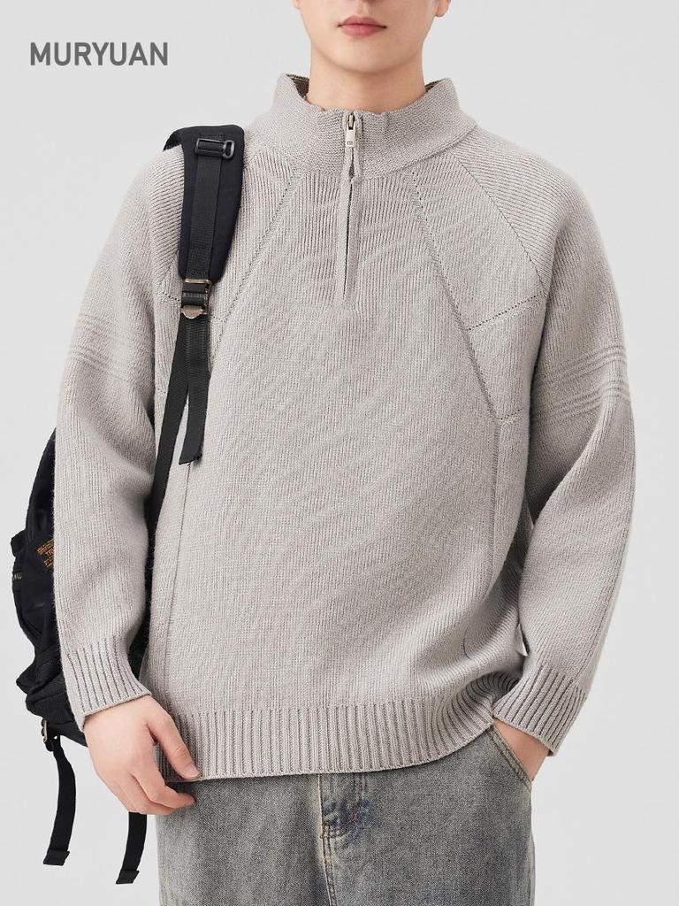 Discover the perfect blend of comfort and style with this men's fall/winter half-zip sweater. Featuring a stand collar for a sophisticated touch, this sweater offers a loose fit for relaxed wear. The long sleeves and standard thickness make it ideal for cooler weather, while the knit design adds a Japanese casual flair. Crafted from a polyester material with chemical fiber blended fur, this sweater ensures warmth and durability for the season.