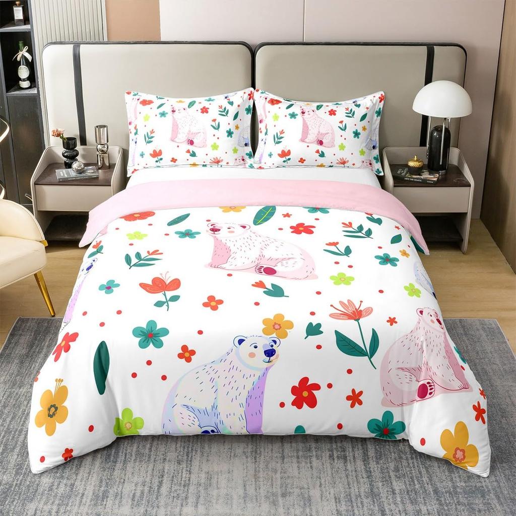 Bear Duvet Cover Sets Bedding Set For Kids Boys Girls Teens Wild Animal Winter Quilt Covers With 2 Pillow Cases Full Size 3 Pcs