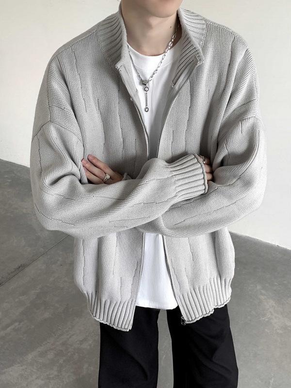 Men's Solid Color Zipper Cardigan Sweater - Autumn & Winter Loose Knit Outerwear