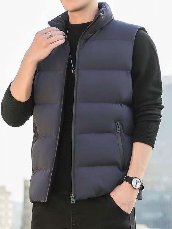 Experience unparalleled warmth and style with this men's plus-size sleeveless down vest, perfect for the chillier months of autumn and winter. Designed with a casual yet fashionable flair, this vest features a regular fit and insulated thickness, ensuring comfort and protection against the cold. The solid pattern enhances its versatile appeal, making it an ideal addition to any outfit. With a convenient zipper closure and a stand neckline, this vest offers both functionality and fashion. Crafted from polyester with a chemical fiber-blended fur lining and filled with luxurious duck down, this outerwear piece combines durability with superior insulation.