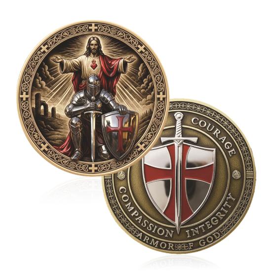 Mångsidig användning för tro och samling: Perfekt storlek för att bäras som en daglig bönesymbol eller visas som en del av en religiös myntsamling, detta mynt passar för olika användningsområden. Det fungerar som ett andligt minne, en påtaglig påminnelse om ens trons rustning, eller ett inspirerande samlarobjekt för entusiaster av kristet arv och utmaningsmynt.. Dess mångsidighet berikar både personlig hängivenhet och hobbysamlingar.