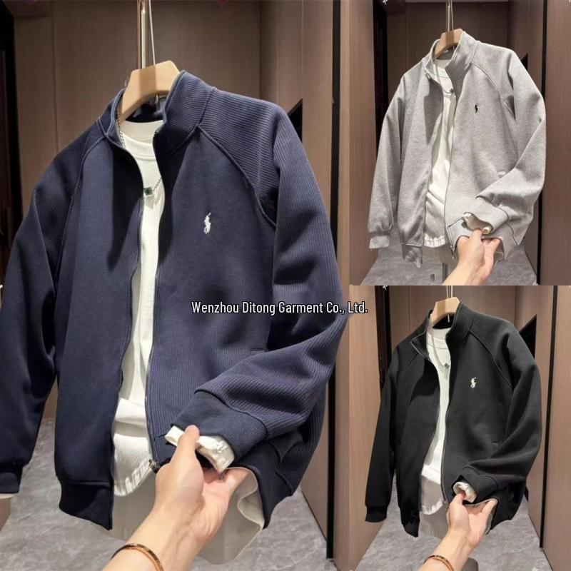 Herrhöstmode Ståkrage Jacka - Lätt Lyxig, Mångsidig, Snygg Enfärgad med Dragkedja