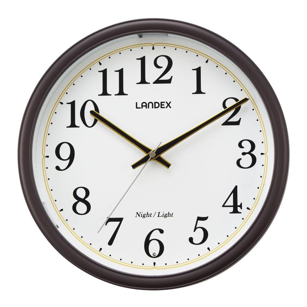 Landex YW9188DBR Analog Wall Automatic Step Second Nighttime Stop Dark Brown Radio-Controlled Clock, 31cm, Lighting, Hand, Function,