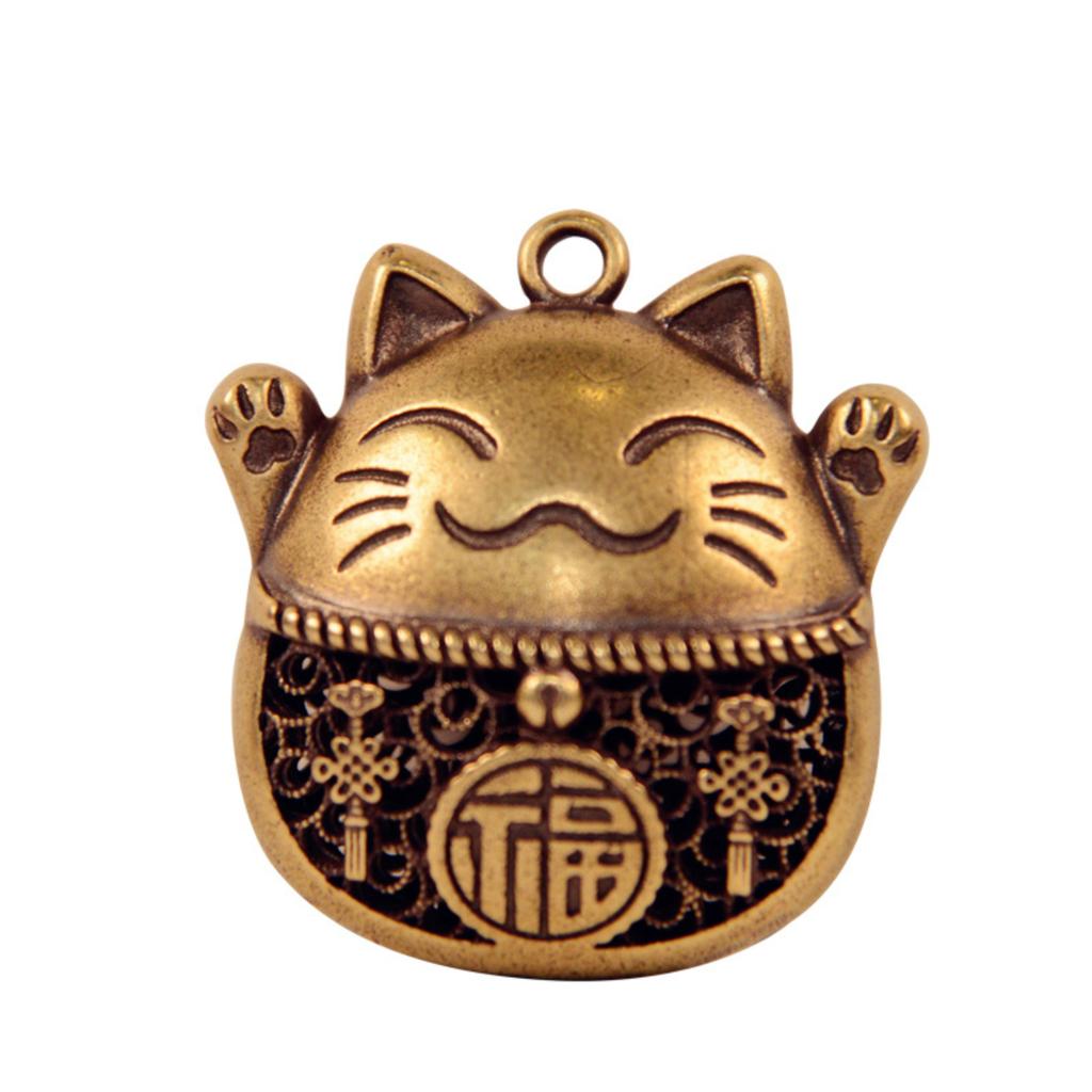 Maneki-neko Brass Keyring Creative Car Key Chain Pendant Hollowed-out Vintage Keyring For Men And Women