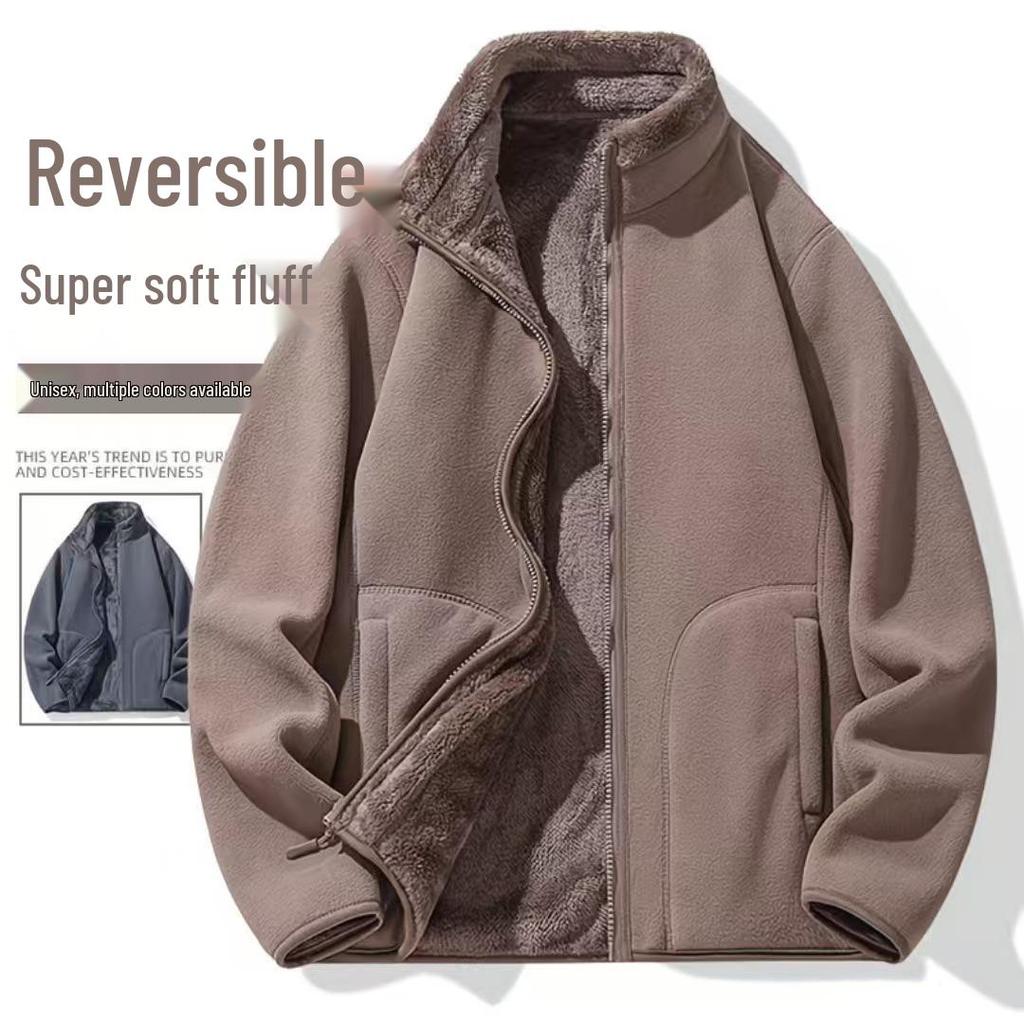 Stay cozy and stylish this winter with this double-sided polar fleece couple jacket. Designed for men, this trendy winter coat features a stand neckline and long sleeves, providing a modern and sleek silhouette. The insulated thickness keeps you warm in chilly weather, while the solid pattern adds a touch of elegance. Made from high-quality fleece and lined with soft polar fleece, this jacket ensures both comfort and durability. Perfect for outdoor adventures or casual outings, it's a must-have addition to your winter wardrobe.