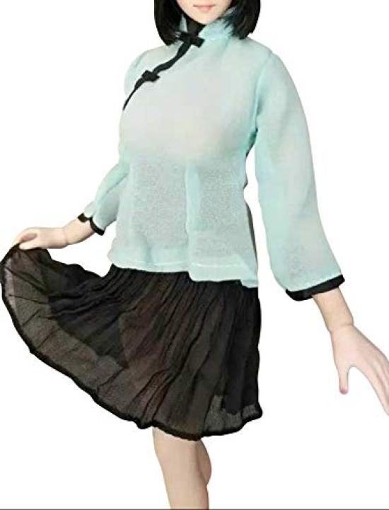 Set contents: 1 top shirt (blue) 1 bottom skirt (black). Only clothing is included. Body, head and stand are not included.