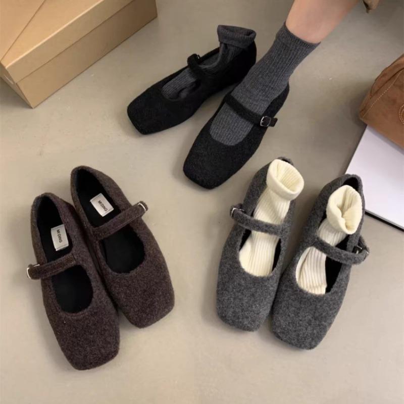 Mary Jane Mao Mao shoes women wear autumn and winter new style late evening single shoes flat-soled velvet cotton shoes