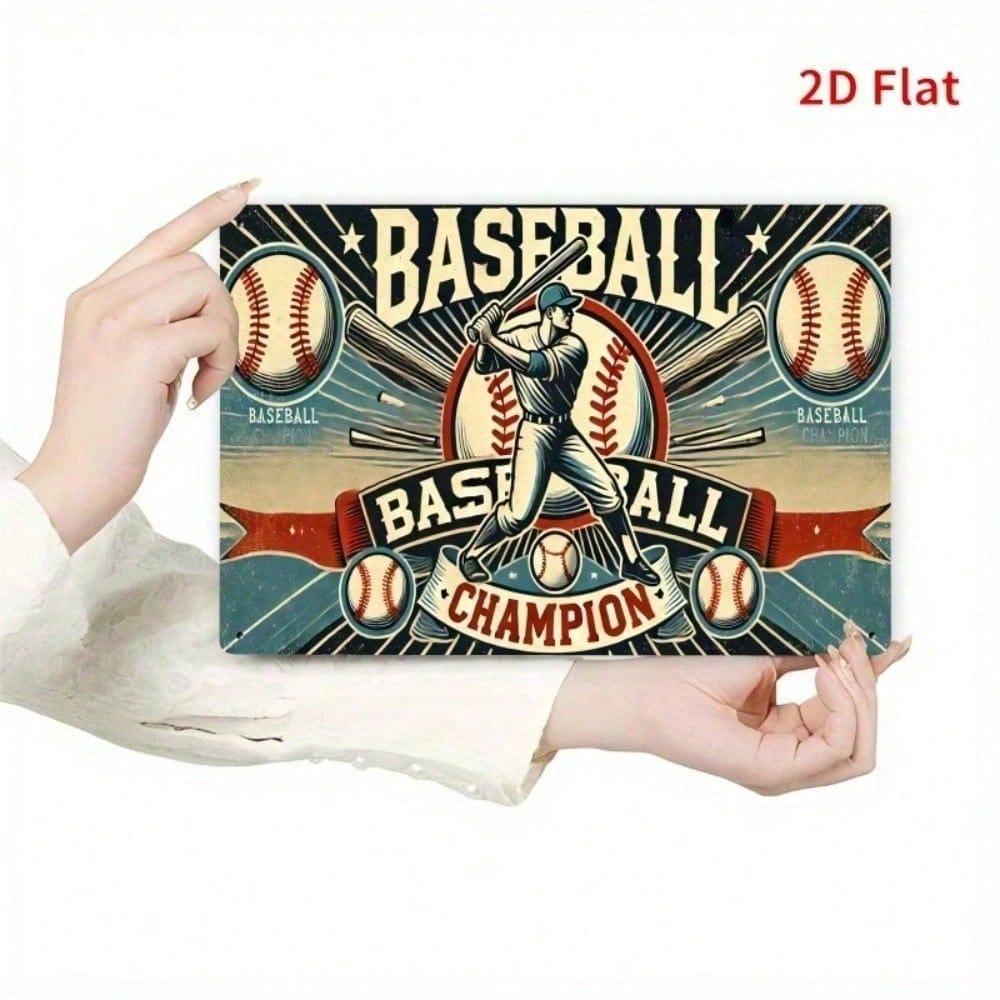 Vintage Metal Wall Art Decor Retro Baseball Champion Player Memorabilia Sign Steel Sports Decor for Home Bar