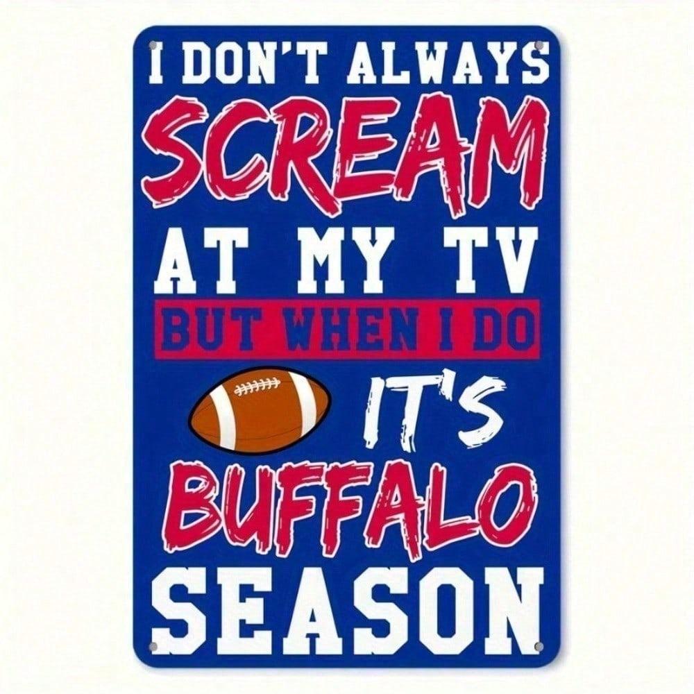 Buffalo Bills NFL Metallväggskylt 8x12 Tum Vintage Rustik Dekor med Levande Logotyp Fläktsouvenir