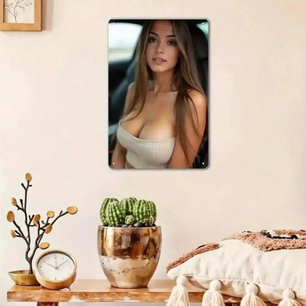 Vintage Metal Wall Art Retro Pinup Female Painting Bohemian Decor with PreDrilled Holes