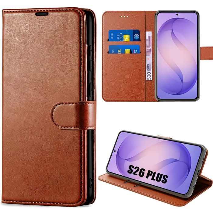 Coque pour Samsung Galaxy S26 Plus, Protection Intégrale Anti-Rayures Cuir Synthétique - Marron