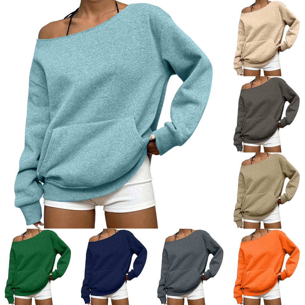 Dam Casual Mode Färg Off-shoulder Långärmad Lös Tröja Med Fickor