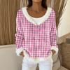 Dammode Plysch V-ringad Pullover Topp Långärmad T-shirt Tryckt Sweatshirt