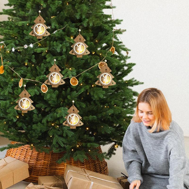 Christmas LED Light Wooden Ornament Christmas Tree Decoration For Home Party New Year Kids Gifts