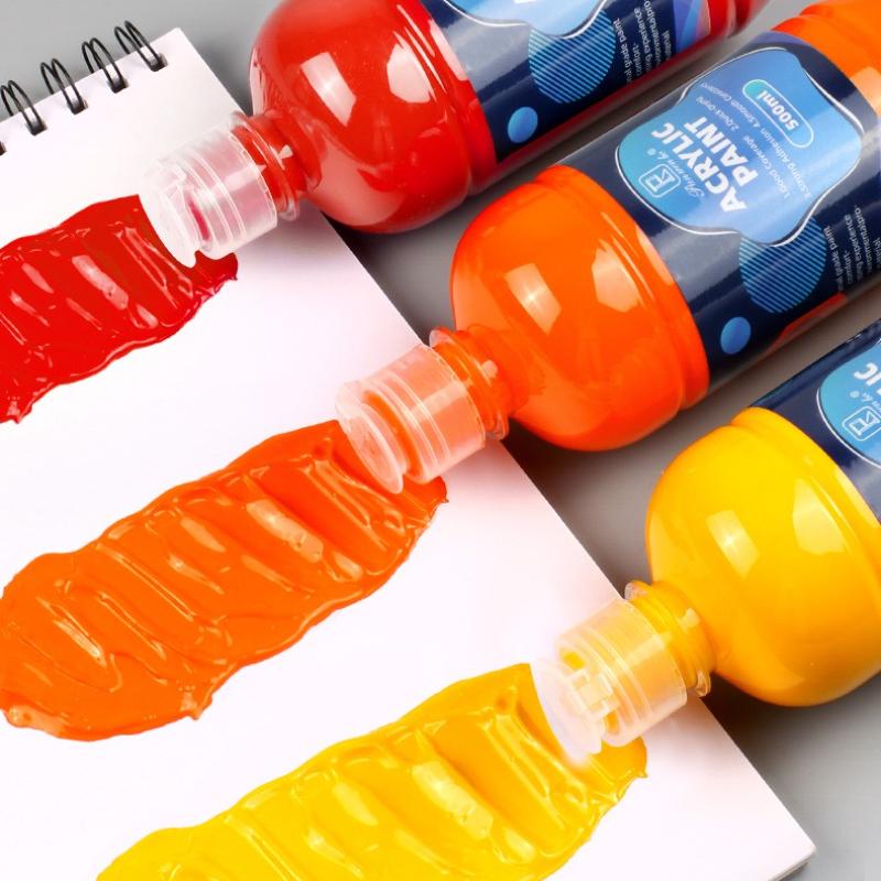 12 Färger Stor Partipack Akrylfärg(500 ml/17 oz) Flaskor, Canvas, Stenar, Trä, Tyg, Keramik, Giftfria för Konstnärer och Vuxna
