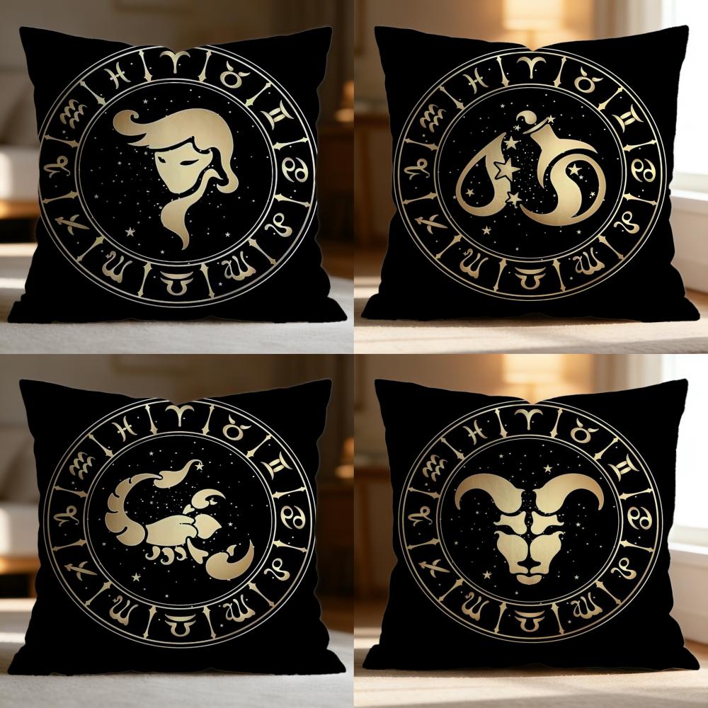 TTwelve Constellations Cushion Cover Soft Washable Pillow Case Multi-Scene for Couch Bed Travel Office Use