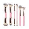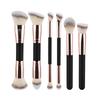 6-delat dubbelsidigt sminkborstset: Foundation-, rouge-, ögonskuggs- och konturborstar med trefärgade borststrån.