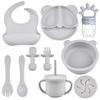 9 delar/set BPA-fri Silikon Baby Matningsset Sugkoppsskål Delad Middagstallrik Mug med Sugrör Sked Gaffel Justerbar Haklapp Barnservis