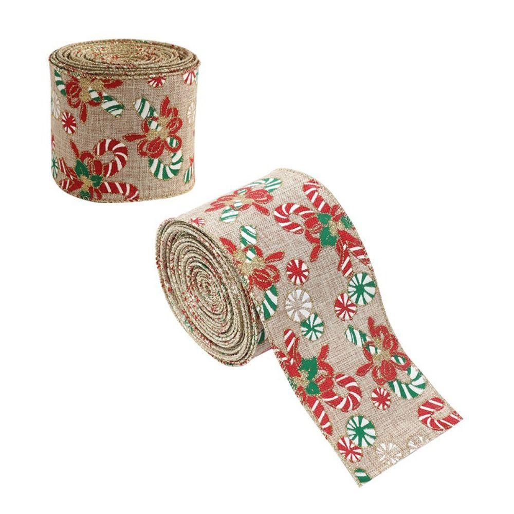 Festive Ribbon Linen Christmas Ribbon Snowflake Print 5M Roll Wire Edge Ribbon Red Green Linen Ribbon Christmas Decoration