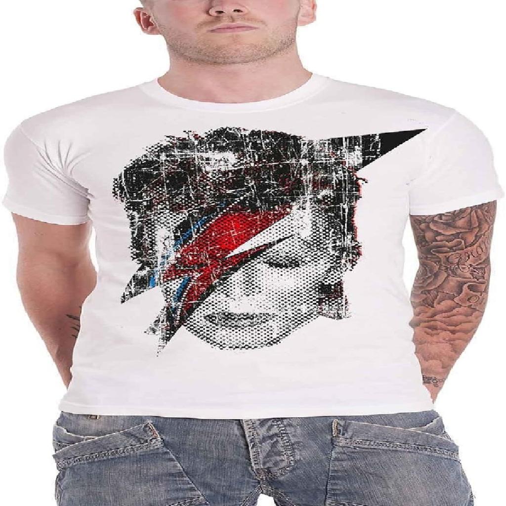 David Bowie T-shirt Halftone Flash Face Ny Officiell Herr Distressad Vit