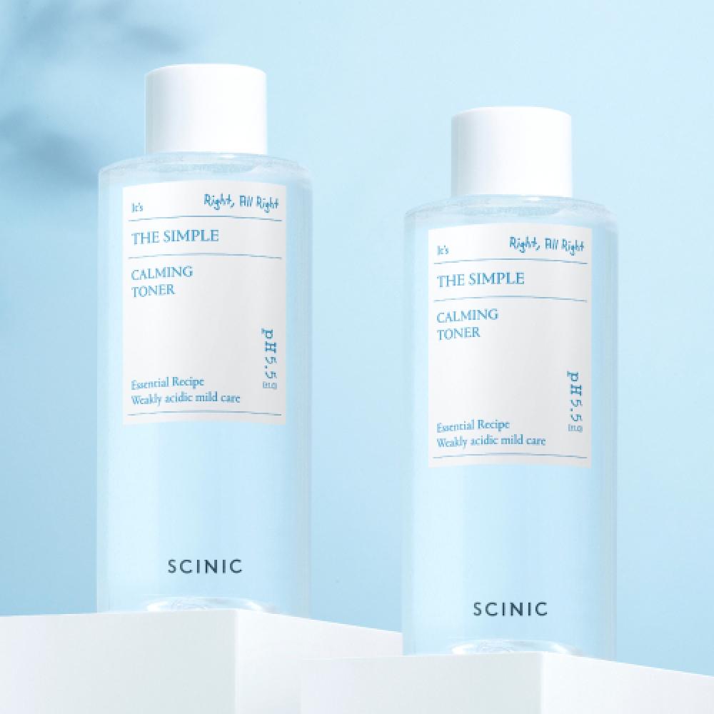 SCINIC The Simple Large Capacity Toner 300ml is a mild soothing toner with a weakly acidic pH that has been developed with only the essential ingredients for skin care. This product is non-irritating and has excellent absorption, although it may have weaker moisturizing properties, so it is recommended to use it with other products. It is fragrance-free and designed for safe use.