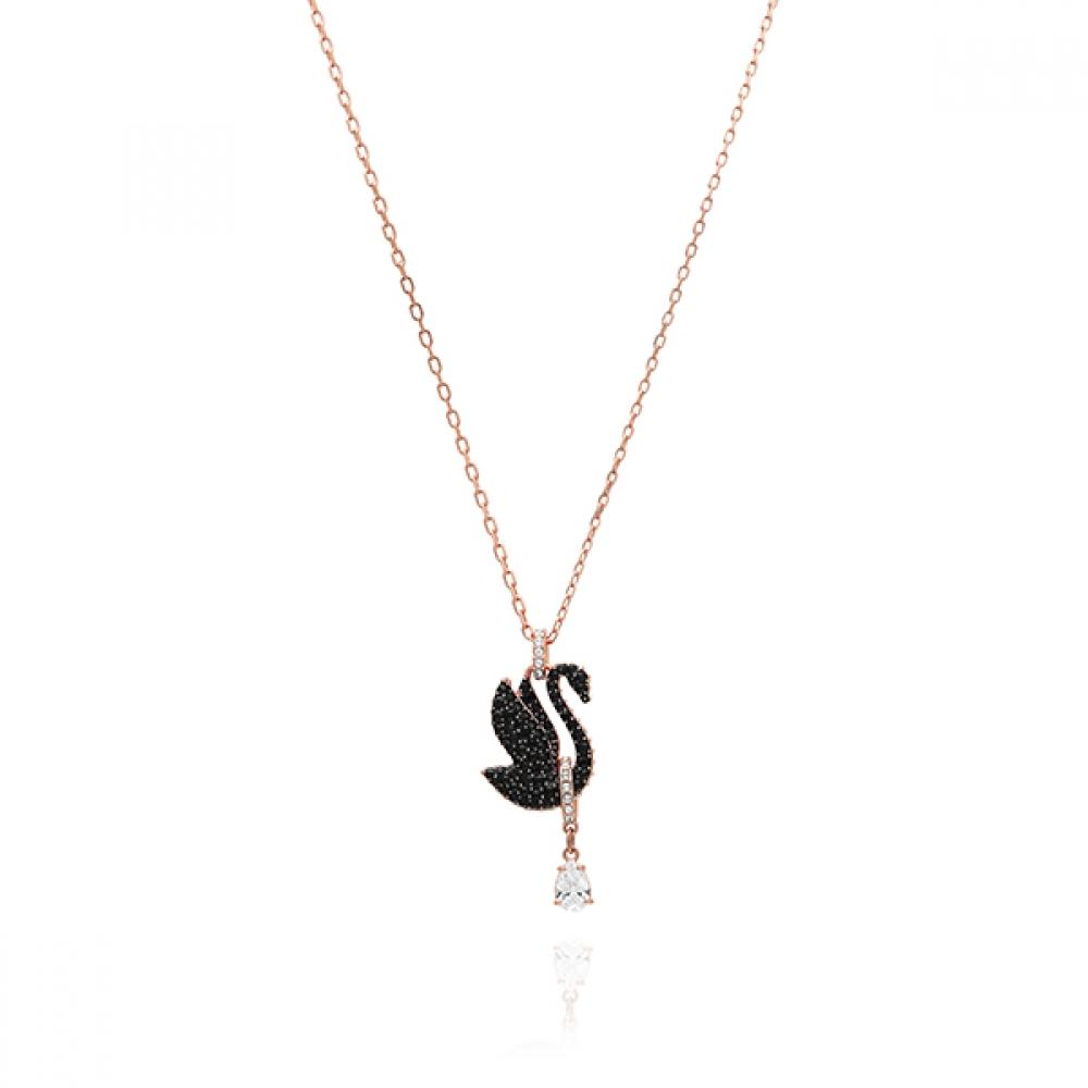 This necklace features the iconic Swarovski swan logo elegantly presented in black. It boasts a luxurious black swan pendant, characterized by a simple yet sophisticated design, making it perfect for women. It's an item that can be utilized for both daily looks and special occasions.
