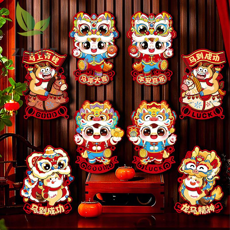 1Pair Chinese Style Zodiac Horse Wall Decor Cartoon Traditional 2026 New Year Door/Windows Decals Blessing Sticker