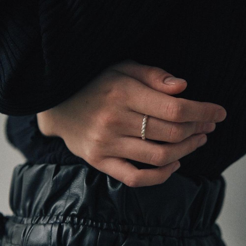 The [925 silver] Cinq.silver.213 / epais bout ring features a thick twisted design resembling a rope. With a basic twist and appropriate thickness, it is especially suitable for use as a thumb ring to add a point to your style. It pairs well with other silver rings for layered looks and offers a lightweight and comfortable wearing experience.