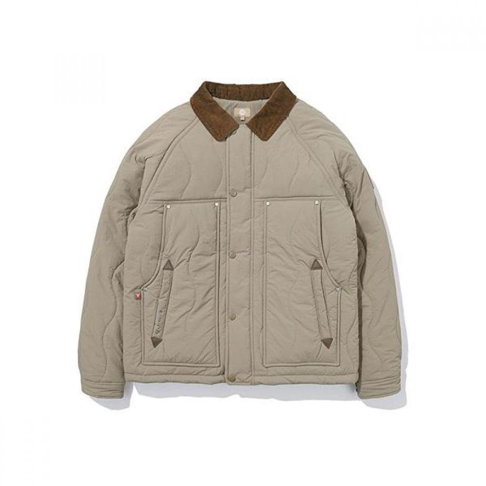 The M Prima Work Jacket is an outdoor garment designed as a lightweight padded jacket. It uses Prima material, which is lightweight and boasts excellent insulation properties. Additionally, it is made of synthetic fibers that enhance wind-resistant features. This men's design includes practical details such as a hood and zipper. It offers a light weight for comfort during prolonged activities, and the dark beige color provides a stylish look.
