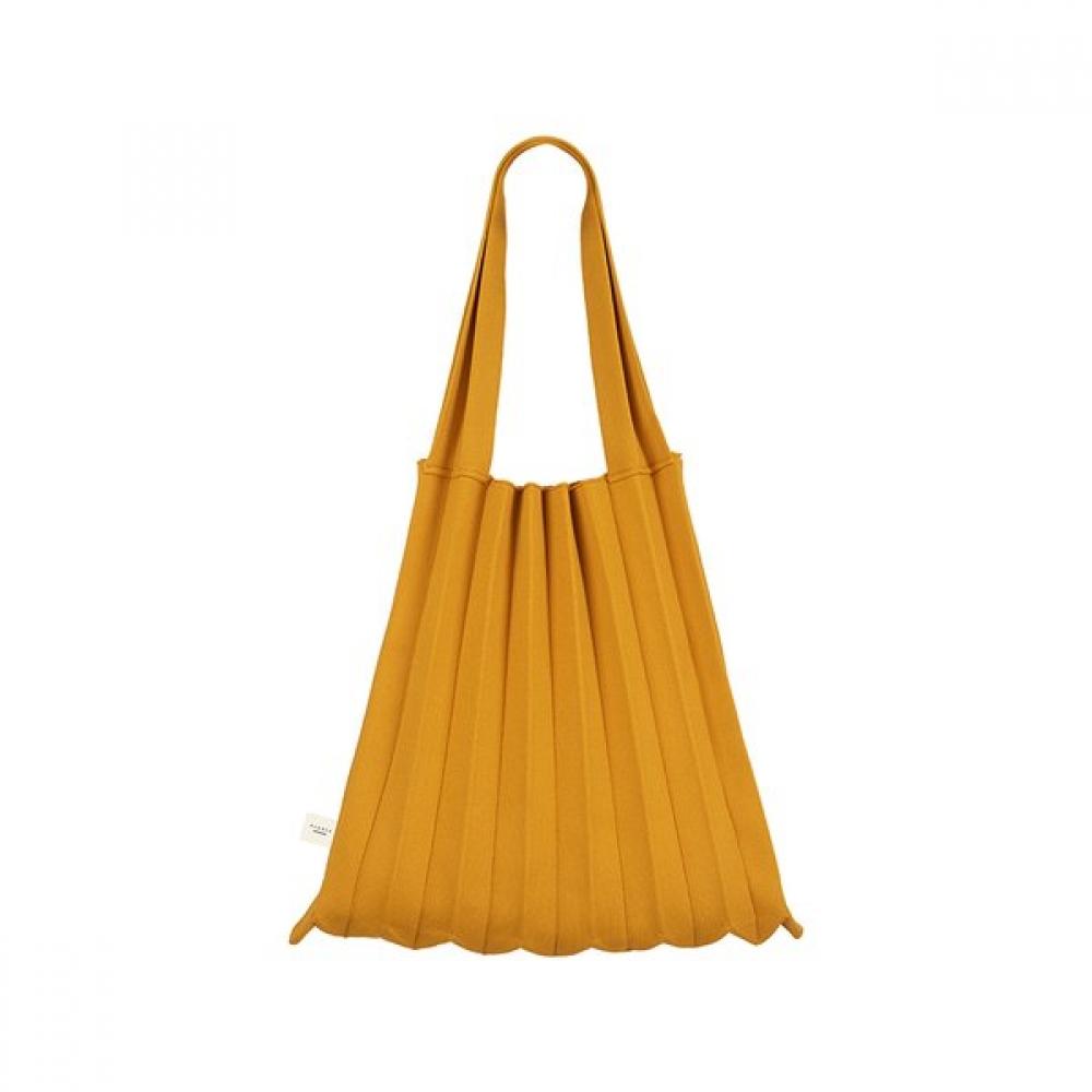 The Pleats Mama Shoulder Bag Jacquard Mustard features a signature pleats design knitted with double weave jacquard, giving it a substantial thickness and a sturdy texture. It is lightweight and soft, allowing the shape of your belongings to drape naturally. It boasts generous storage capacity and can be folded for storage when not in use.