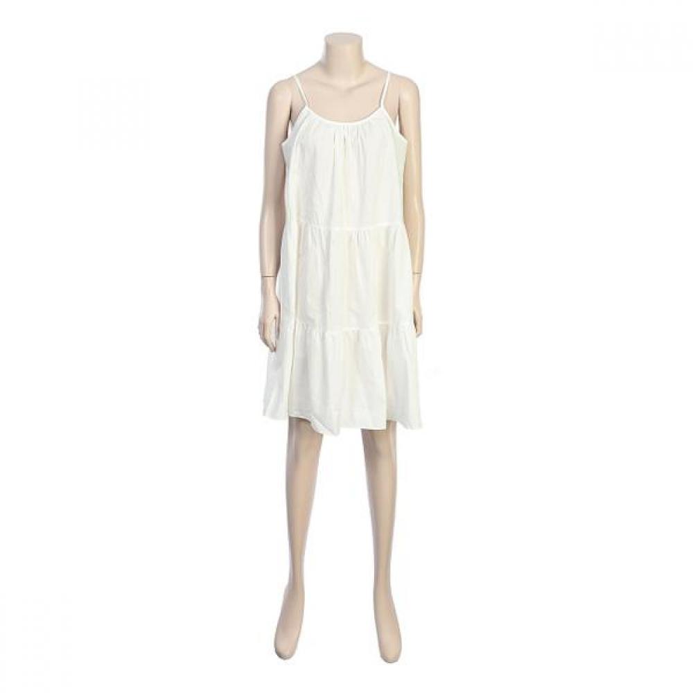The Barbara Ivory Full Slip Dress (AFS4599S IV) features a romantic design made from 100% organic cotton fabric with ruffle details. The ivory shade is highlighted by shirred accents, and adjustable shoulder straps allow for a loose fit that covers the body shape. The dress is cut short to mid-thigh, making it versatile for resort wear or layered looks, designed for lightweight and comfortable wear.