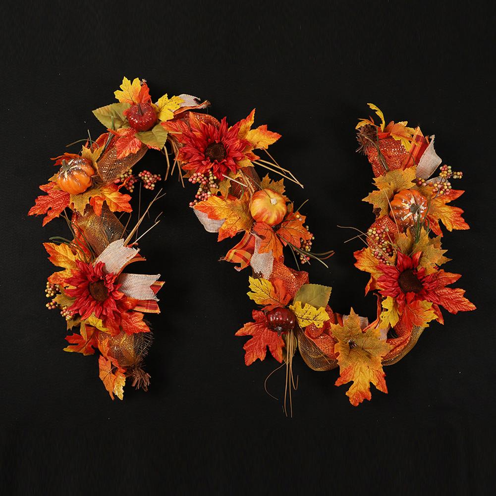 Fall Garland, 6Ft Hanging Fall Decor Maples Leaf Pumpkins Garland, Autumn Garland For Thanksgiving Halloween Harvest Mantle Fireplace Table Decor