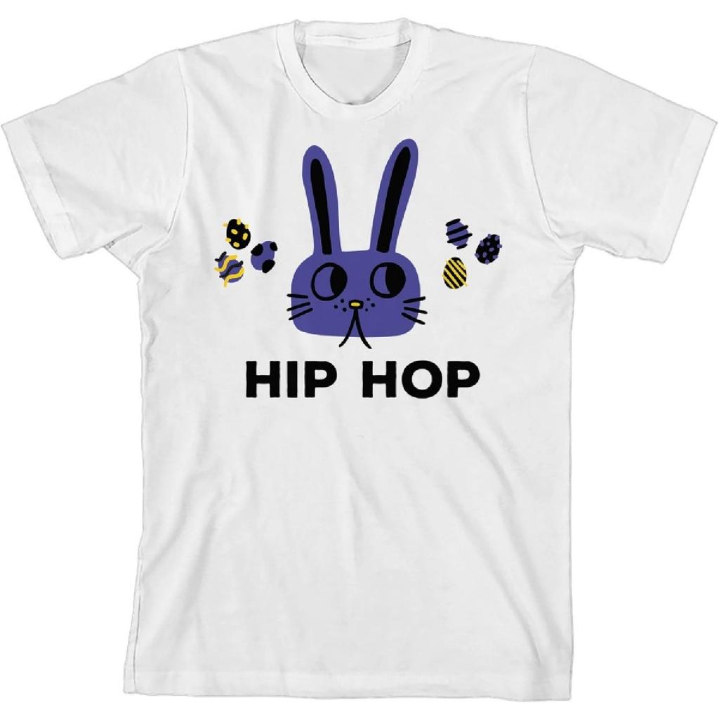 Bunny Bros Hip Hop Cartoon Bunny Crew Neck Short Sleeve Boys' White T-shirt