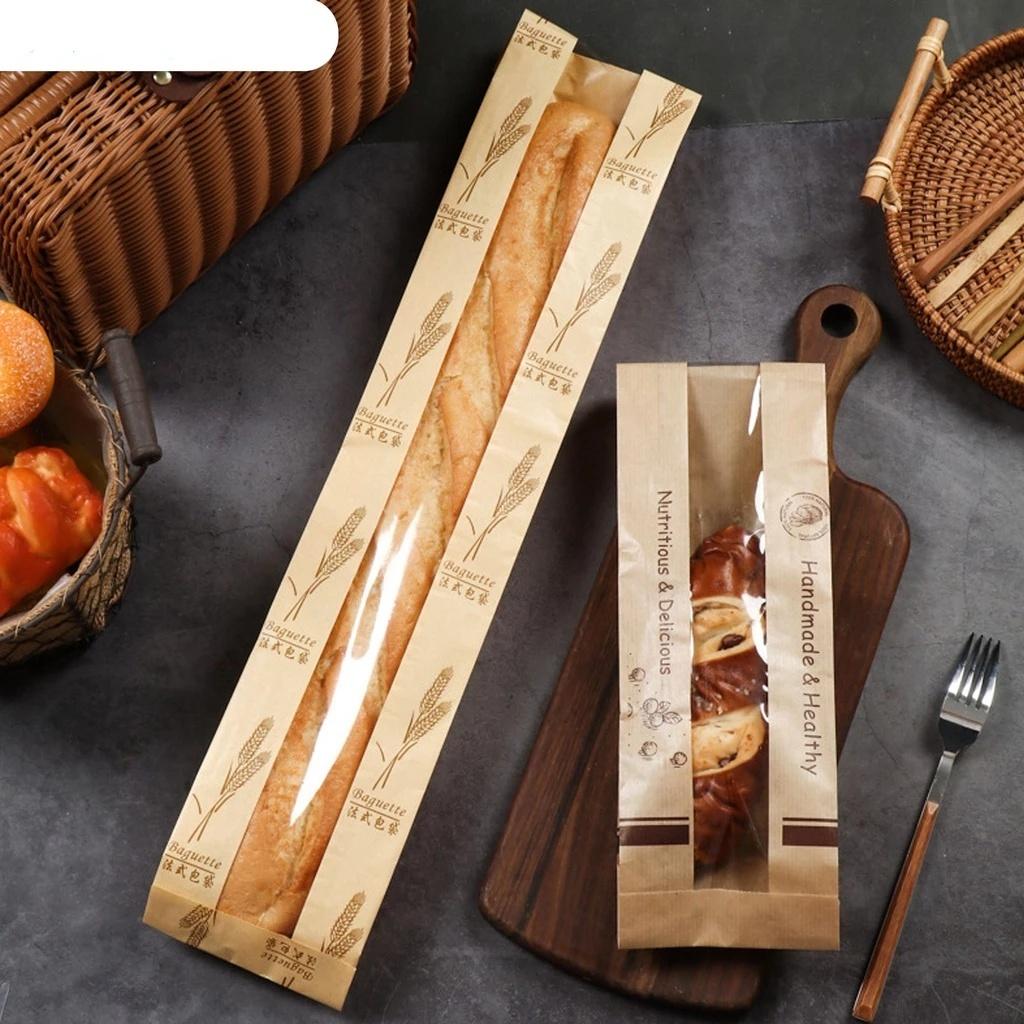 25pc Kraft Paper Bakery Bags Long Baguette & Loaf Bread Bags Moisture-Proof Sealed Freshness Preservation Baking Packaging Bags