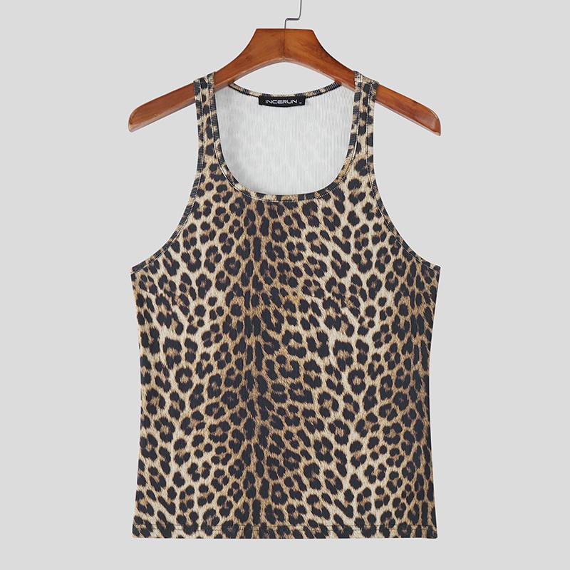 INCERUN Summer Men's Sleeveless Strap Leopard Fitted Tank Tops