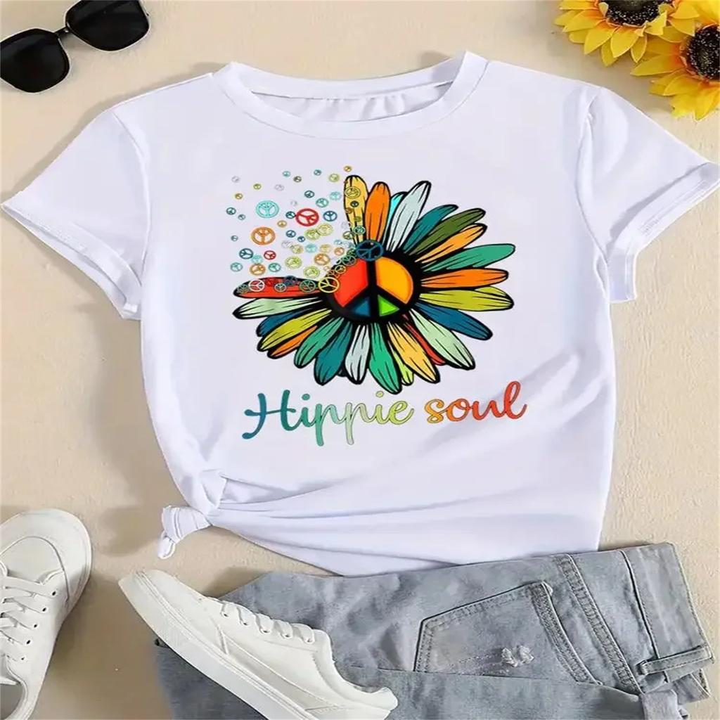 Clothing Printed Casual Tee Short Sleeve Women Top Female Flower Style Cute 90s Cute T Shirt Fashion Clothes Graphic T-shirts