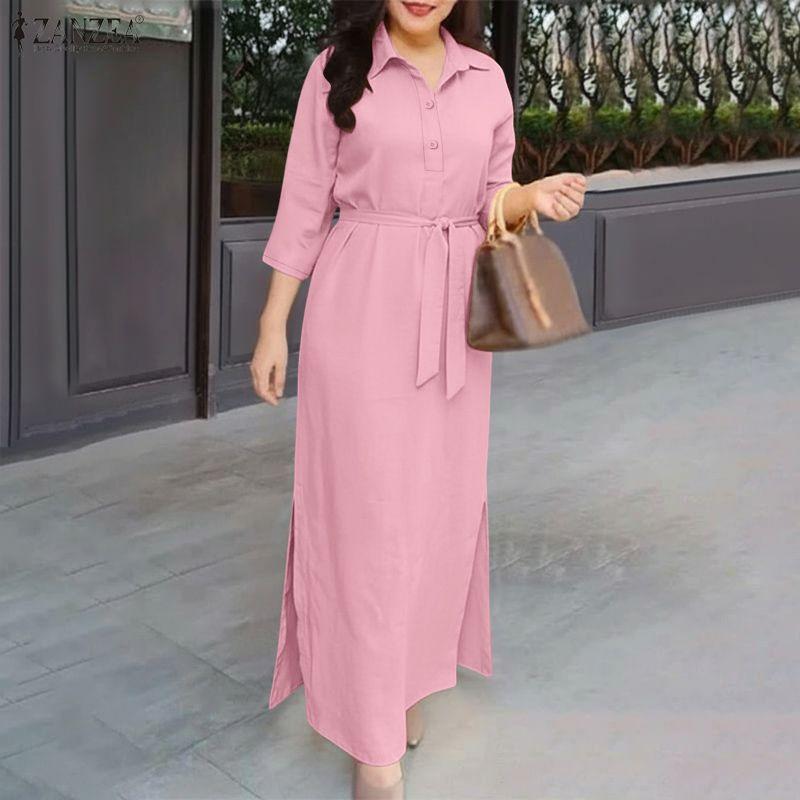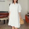 ZANZEA Women Casual Turn Down Collar Loose Long Sleeve Shirt Dress