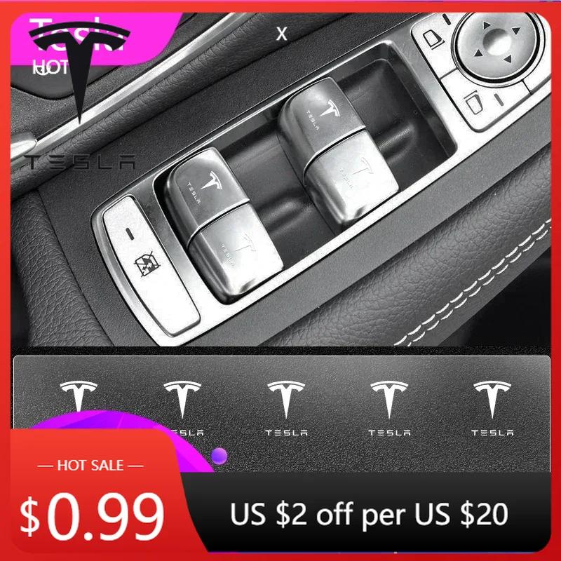 Bilklistermärke 2025 Ny Tesla Bilfönsterglas Lyftknapp Klistermärke Rattdekaler För Tesla Model 3 Model S Model X Roadster