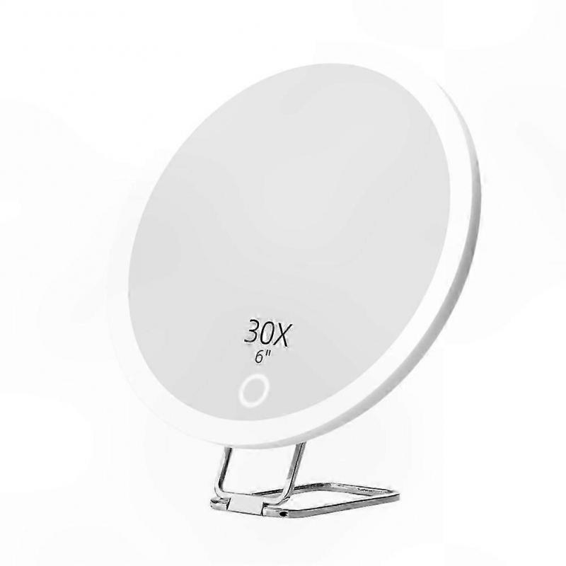 Upplyst förstoringsspegel med 30x zoom Bärbar sminkspegel med LED-lampor Vikbar design för resebruk
