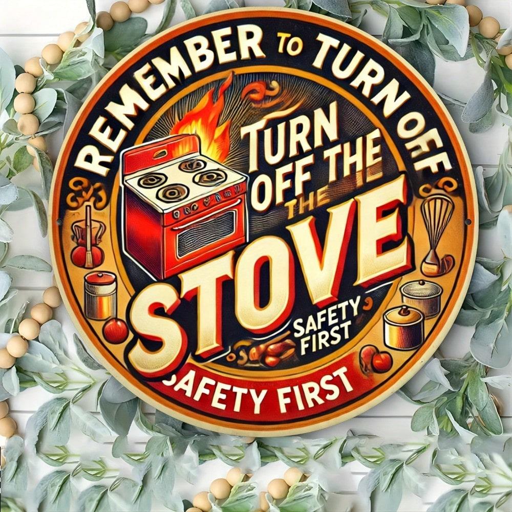 Vintage Metal Stove Sign Kitchen Wall Art Retro Safety Decor 8x8 Inch Home Aluminum