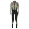 Damsportdräkt med glittrande strass för gymnastik, helkroppsdräkt, färgblock, nät, långärmad body