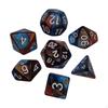 - Polyedriskt tärningsset: Innehåller 7 olika tärningar, D4, D6, D8, D10 (Nummer 0-9), D10 (Siffror 00-90), D12 och D20.