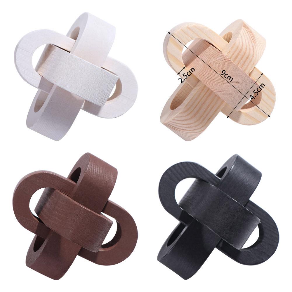 Rustik Konst Hantverk Träknut Prydnad Handskulpterad 3-Länkad Kedja Träspänne Handgjord Träkedja Kula Bord