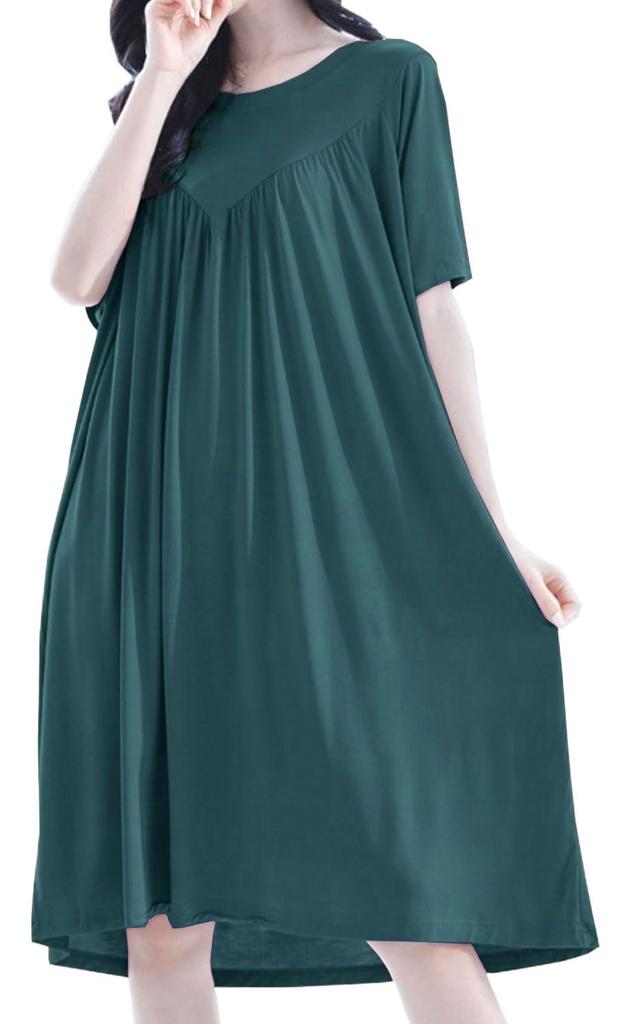 Roiyezo Loose Super Long Short Leisure Solid Green Women's Loungewear, Loungewear, Dress, Fit, Elastic, Nightgown, Sleeves, V-Neck, Pajamas, Popular,